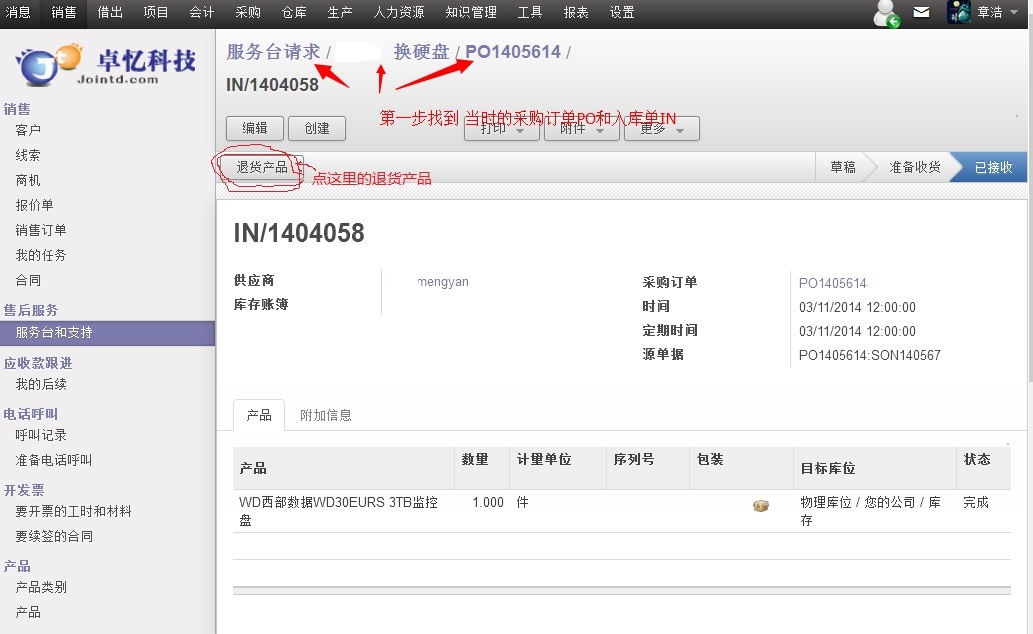 附件来自:卓忆原创分享:原创多图Odoo退货OpenERP退货案例一