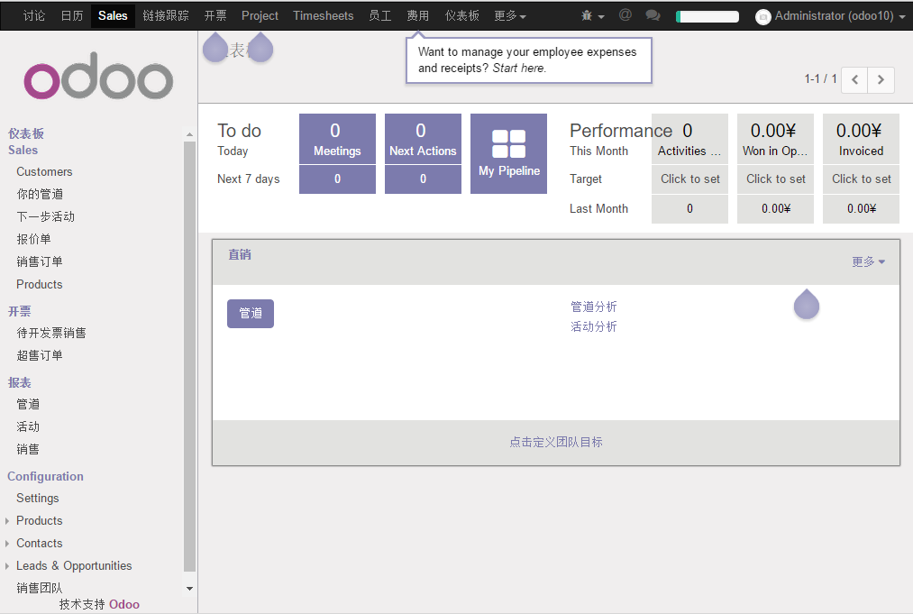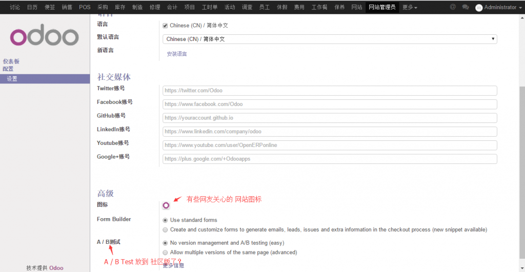 配色又换过了 、 提示比Odoo9 做的更醒目了(水滴状的就是,鼠标停留在上面会有帮助信息)