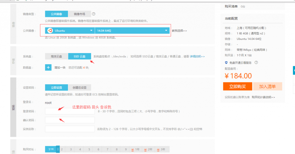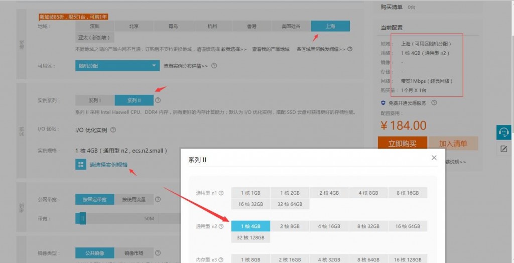 一般买 单核,2g内存,1mb带宽 就可以 了,1个月 100元左右,图里面是4g内存 上海的。