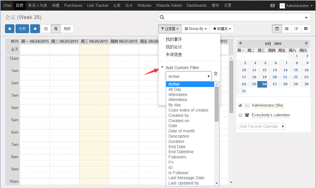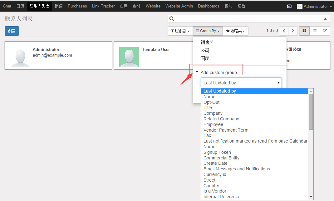 在Odoo9.0 中 用户 可以 自己增加 分组和 过滤器了,比之前的 保存收藏夹 又方便了点: