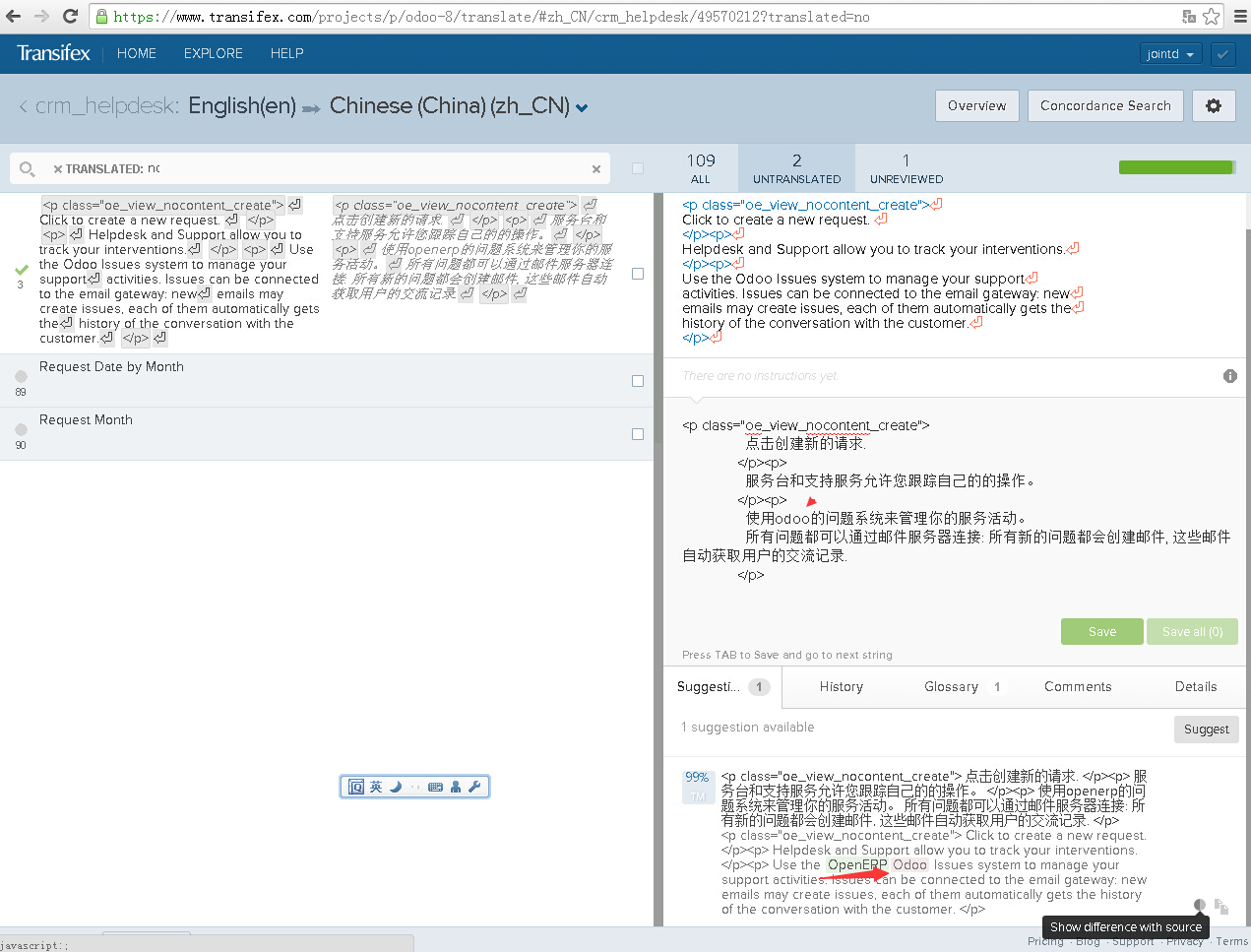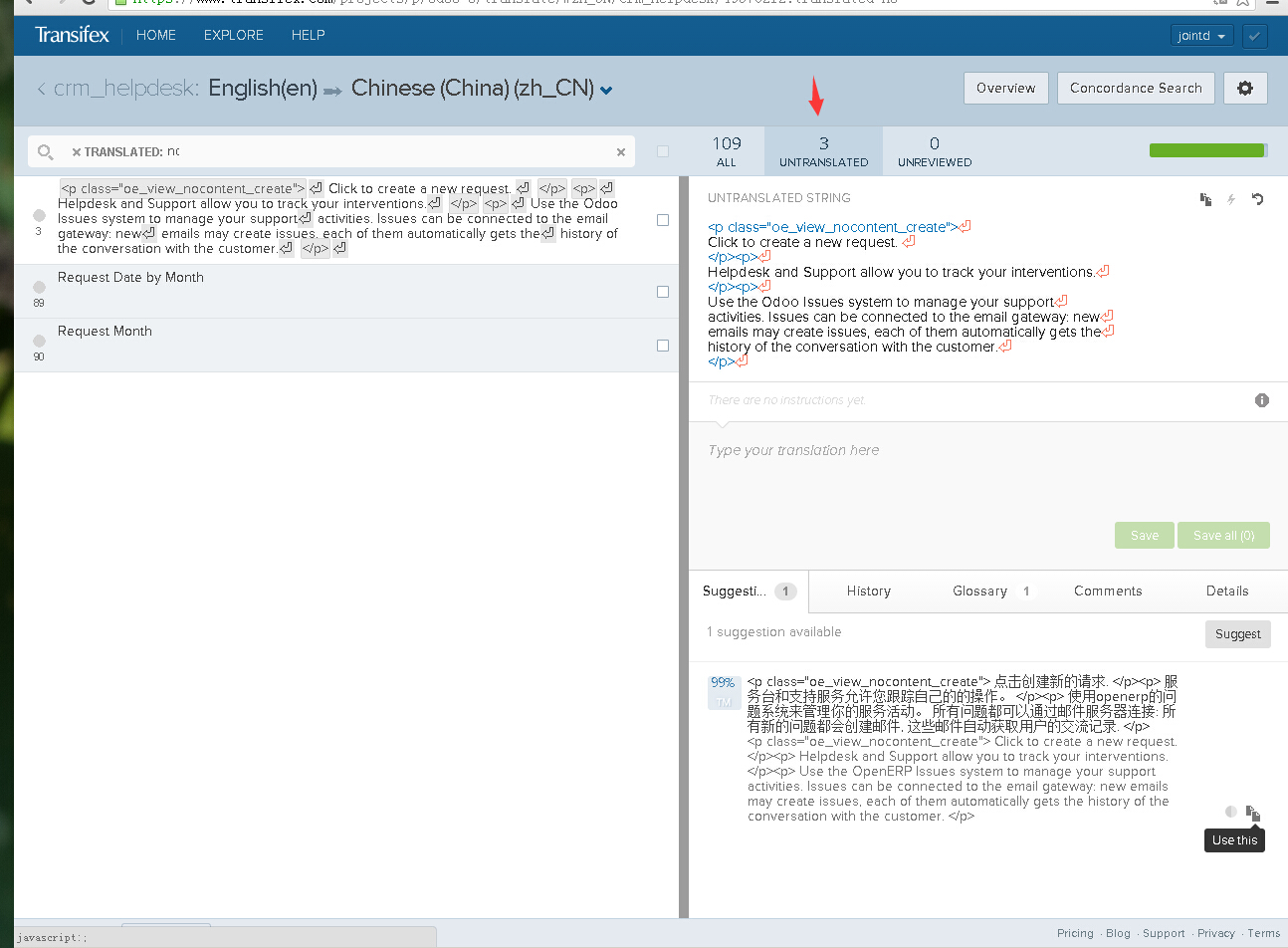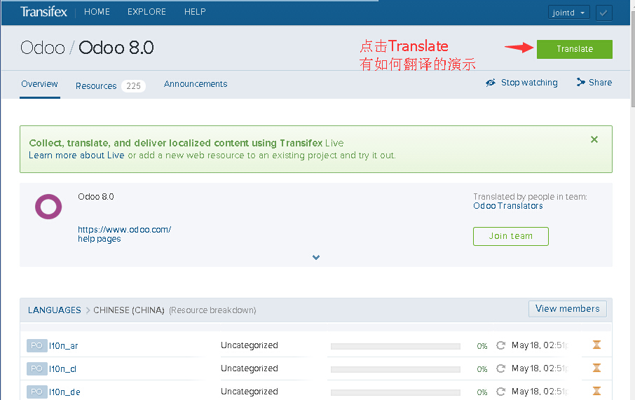 卓忆整理:多图:通过Transifex参与官方Odoo翻译Odoo汉化Odoo中文化