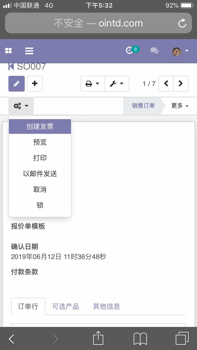 查看单据上,苹果ios有些模块有点小问题(显示的单据数量向下刷新不出),