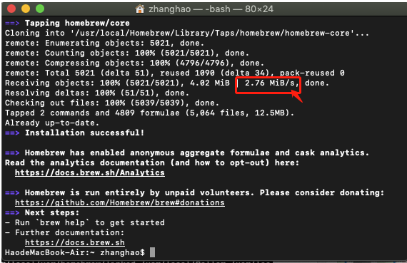 homebrew的源也在github上,网上有帖子,换为国内的提高速度,有兴趣的朋友可以试试,参考:https://blog.csdn.net/qq_33591200/article/details/82882562 (已测有坑) 和