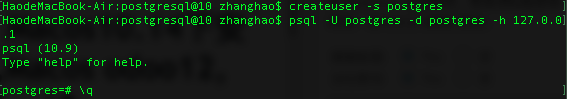 4.4 关闭当前终端,新开一个终端,让之前的路径生效,然后创建postgres用户 运行: