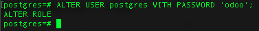 ALTER USER postgres WITH PASSWORD 'odoo';
