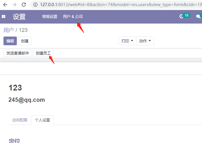 - Odoo Technical: 可以在用户界面创建员工,并自动关联:
