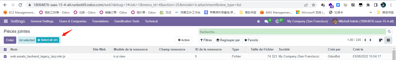 2022年8月3日发现 ,odoo15 可以一次选中所有的文件,这是个好功能: