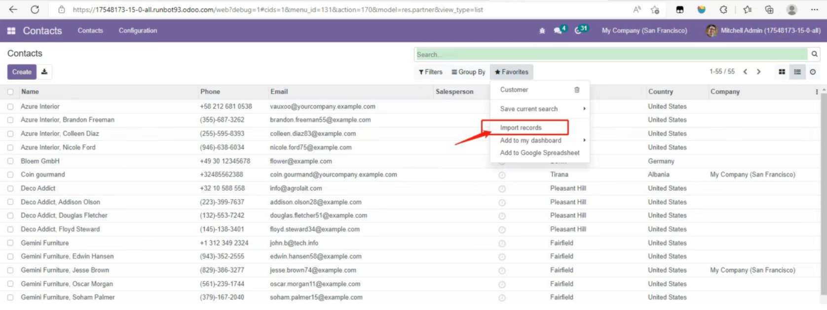 注意:Odoo15的导入功能移动到了收藏中
