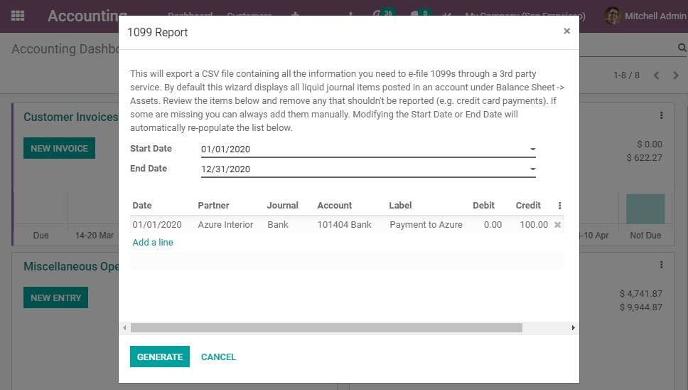 5.作为美国本地化的一部分,您现在可以轻松地生成适当的CSV,一次将1099报告以电子方式归档。